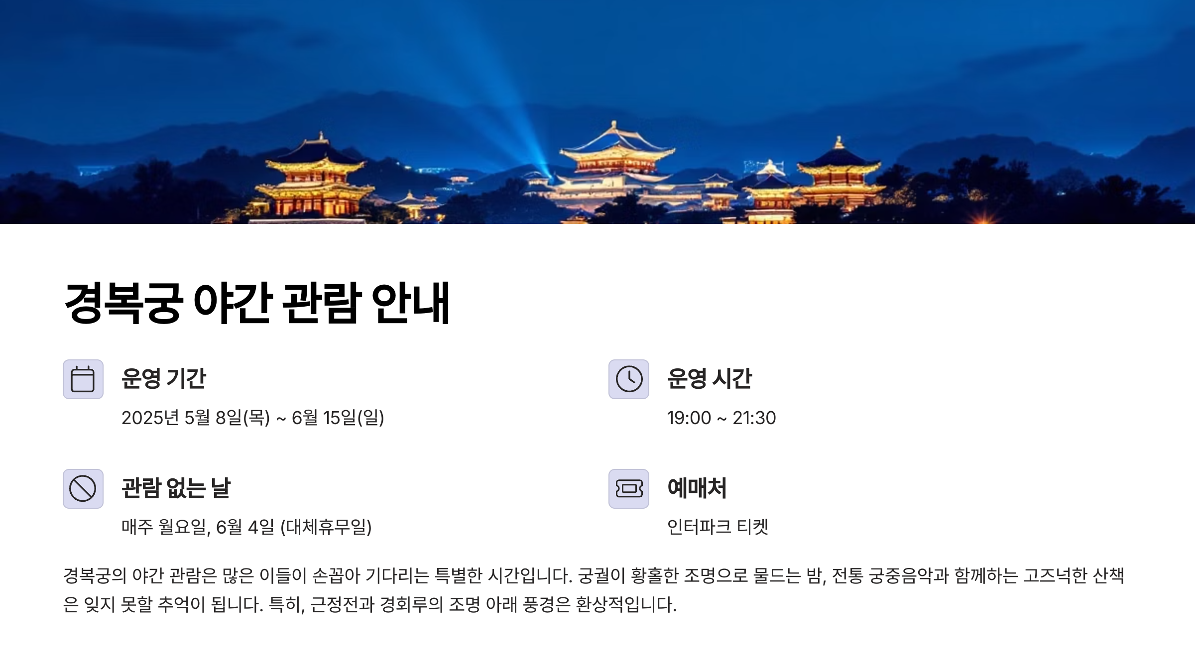3. 경복궁 야간 관람 안내