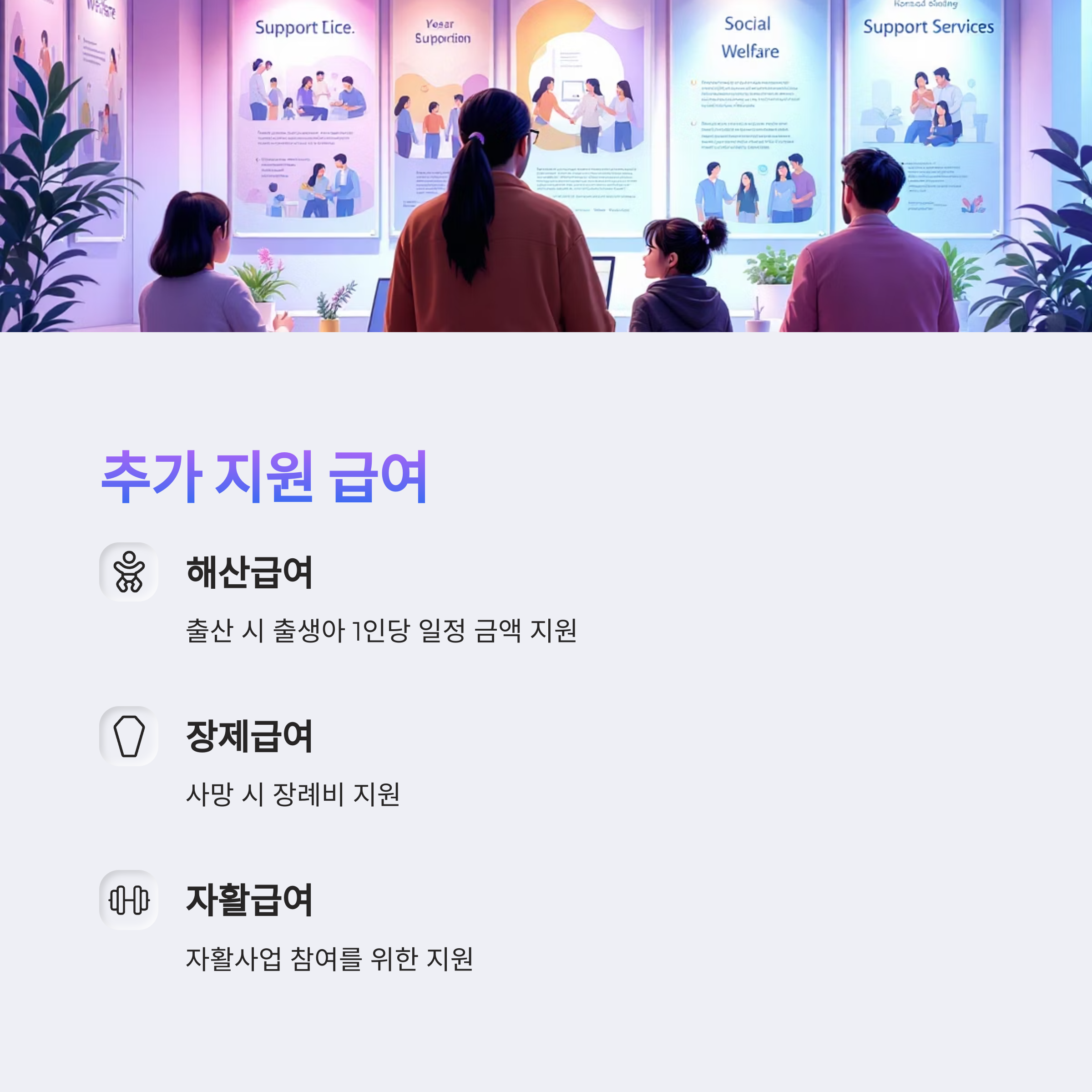 - 해산급여: 출산 시 출생아 1인당 일정 금액 지원