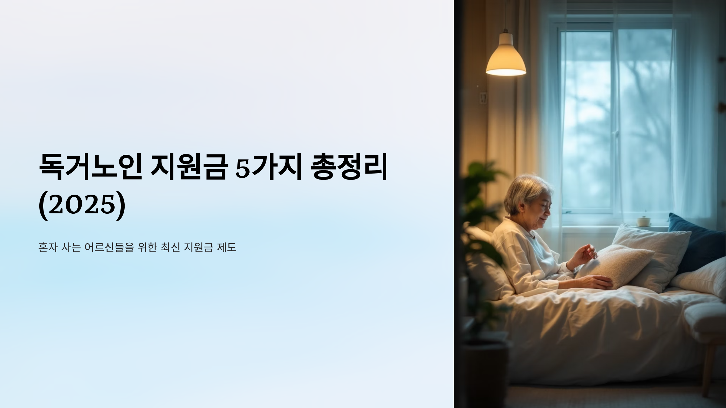 혼자 사는 어르신들을 위한 2025년 최신 지원금 제도를 한눈에 정리했습니다. 기초연금부터 에너지·돌봄 서비스까지, 놓치기 쉬운 주요 5대 지원 항목을 확인하세요.