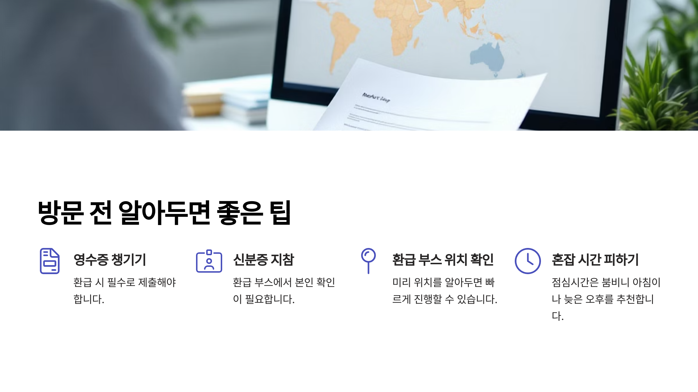 - ✅ 신분증 또는 휴대전화 지참: 환급 부스에서 본인 확인이 필요합니다.