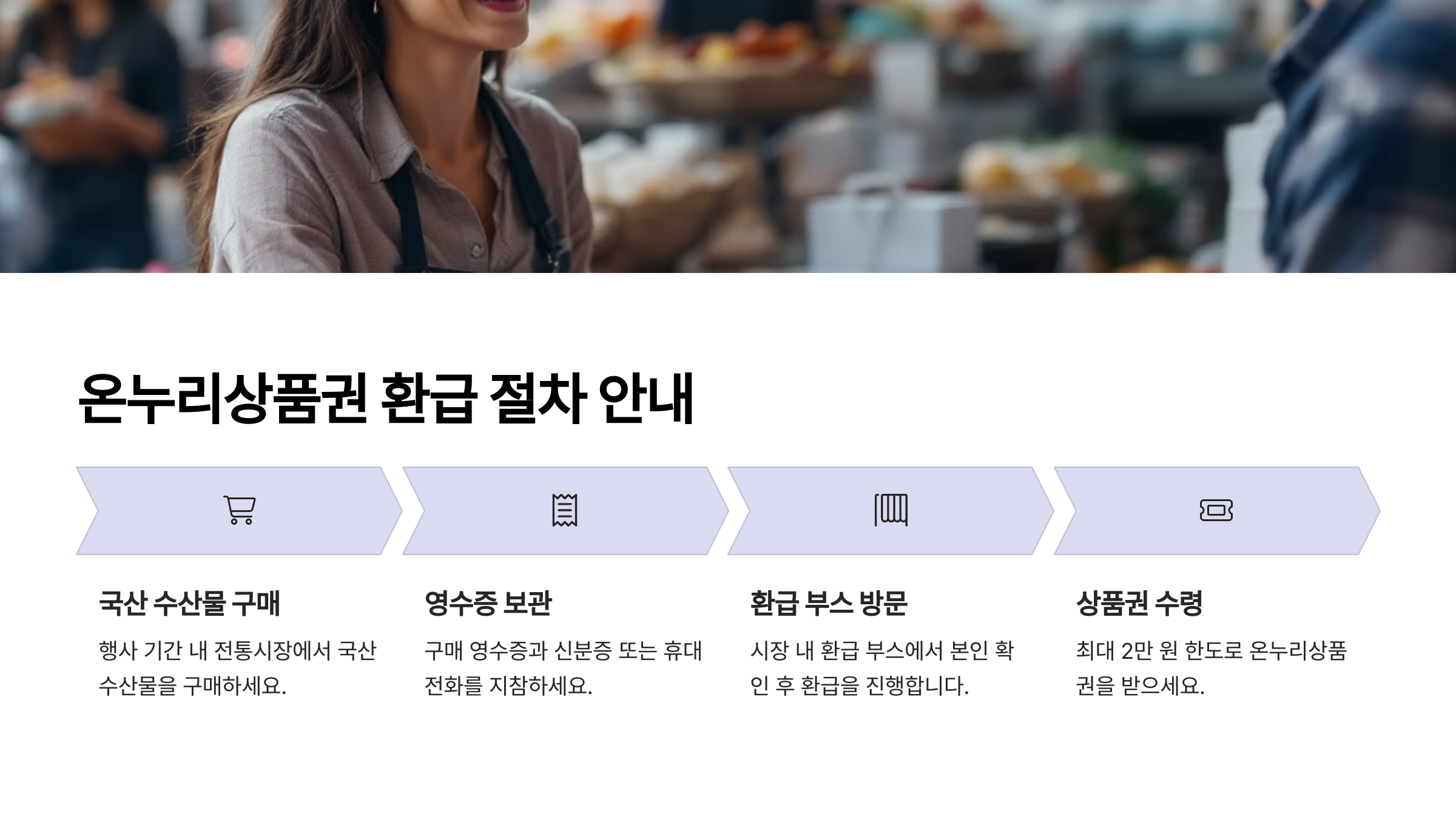 - 전통시장 내 환급 부스 방문 → 본인 확인 후 환급 진행