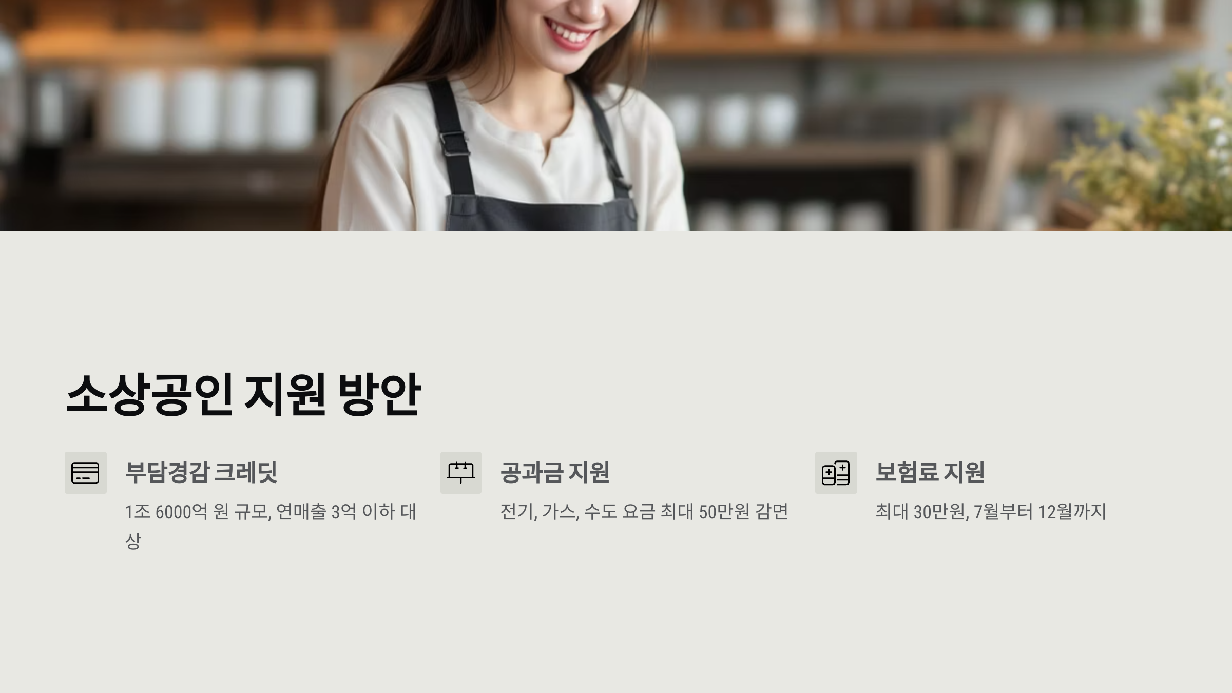 연매출 3억 원 이하 소상공인에게 전기, 가스, 수도 요금 등을 50만 원 한도로 지원합니다. 또한, 보험료 지원도 포함되어 경제적 부담을 완화해줍니다.
