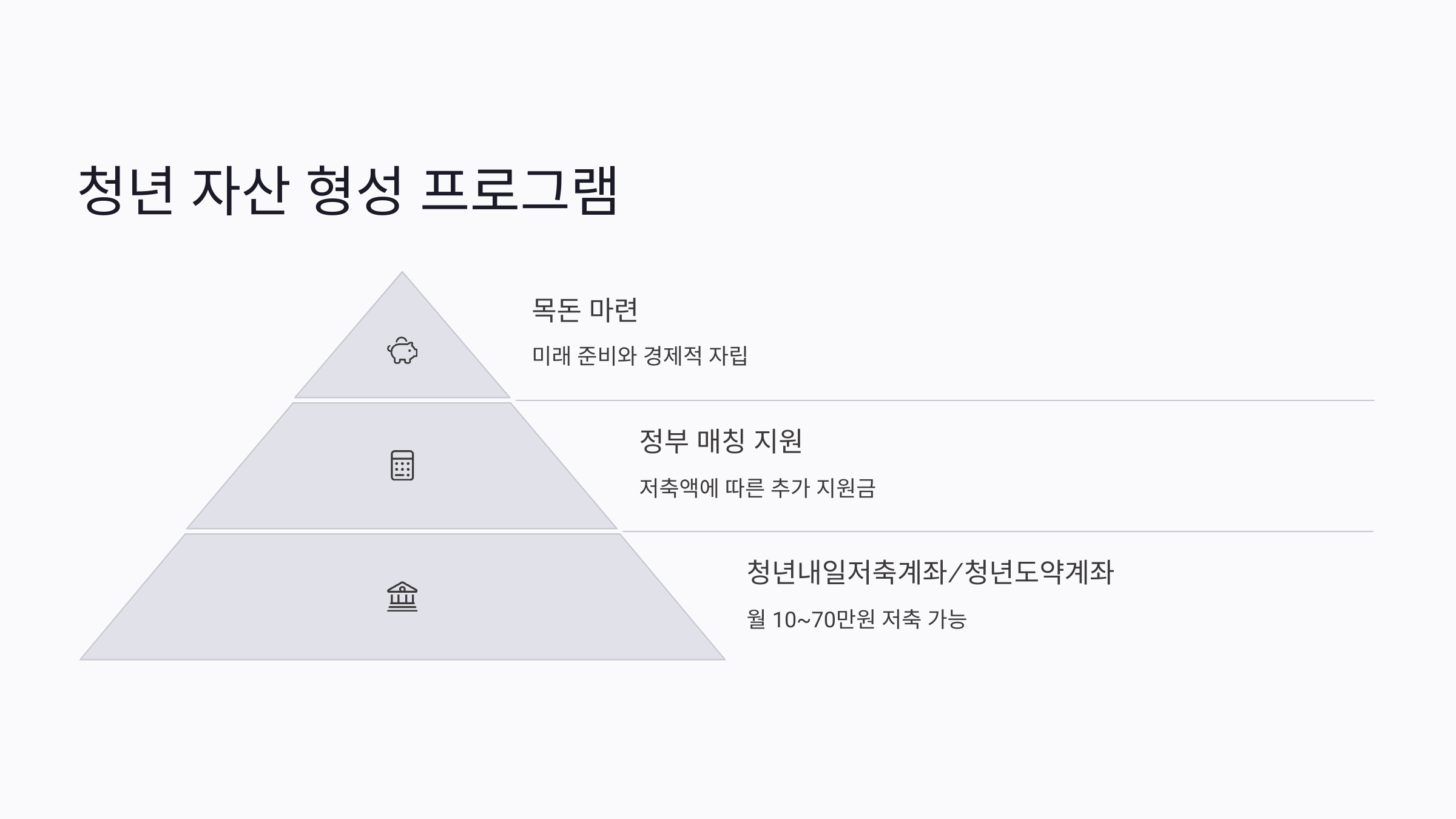 청년들의 자산 형성을 돕기 위해 정부는 다양한 프로그램을 운영하고 있습니다. 대표적으로 '청년내일저축계좌'와 '청년도약계좌'가 있으며, 이를 통해 청년들은 일정 금액을 저축하면 정부가 추가로 지원금을 매칭하여 목돈을 마련할 수 있습니다. 이러한 프로그램은 청년들의 경제적 자립을 지원하고, 미래를 준비하는 데 큰 도움이 됩니다.