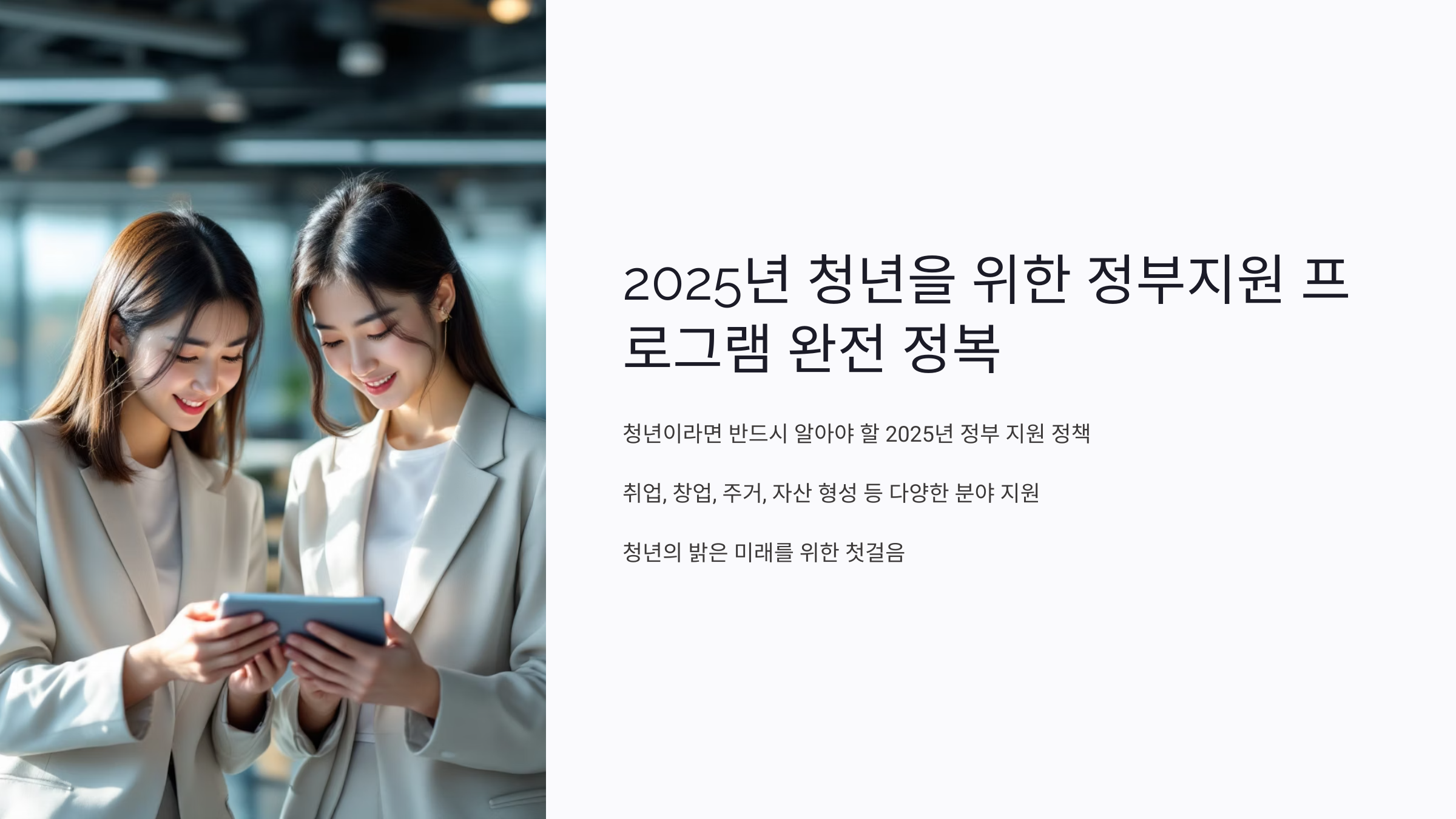 안녕하세요, 여러분! 2025년을 맞이하여 정부에서 청년들을 위한 다양한 지원 프로그램을 마련했습니다. 취업, 창업, 주거, 자산 형성 등 여러 분야에서 청년들의 미래를 응원하는 정책들이 시행되고 있는데요. 이번 포스팅에서는 이러한 정부 지원 프로그램들을 상세히 소개해드리겠습니다. 청년 여러분의 밝은 미래를 위한 첫걸음, 함께 시작해볼까요?