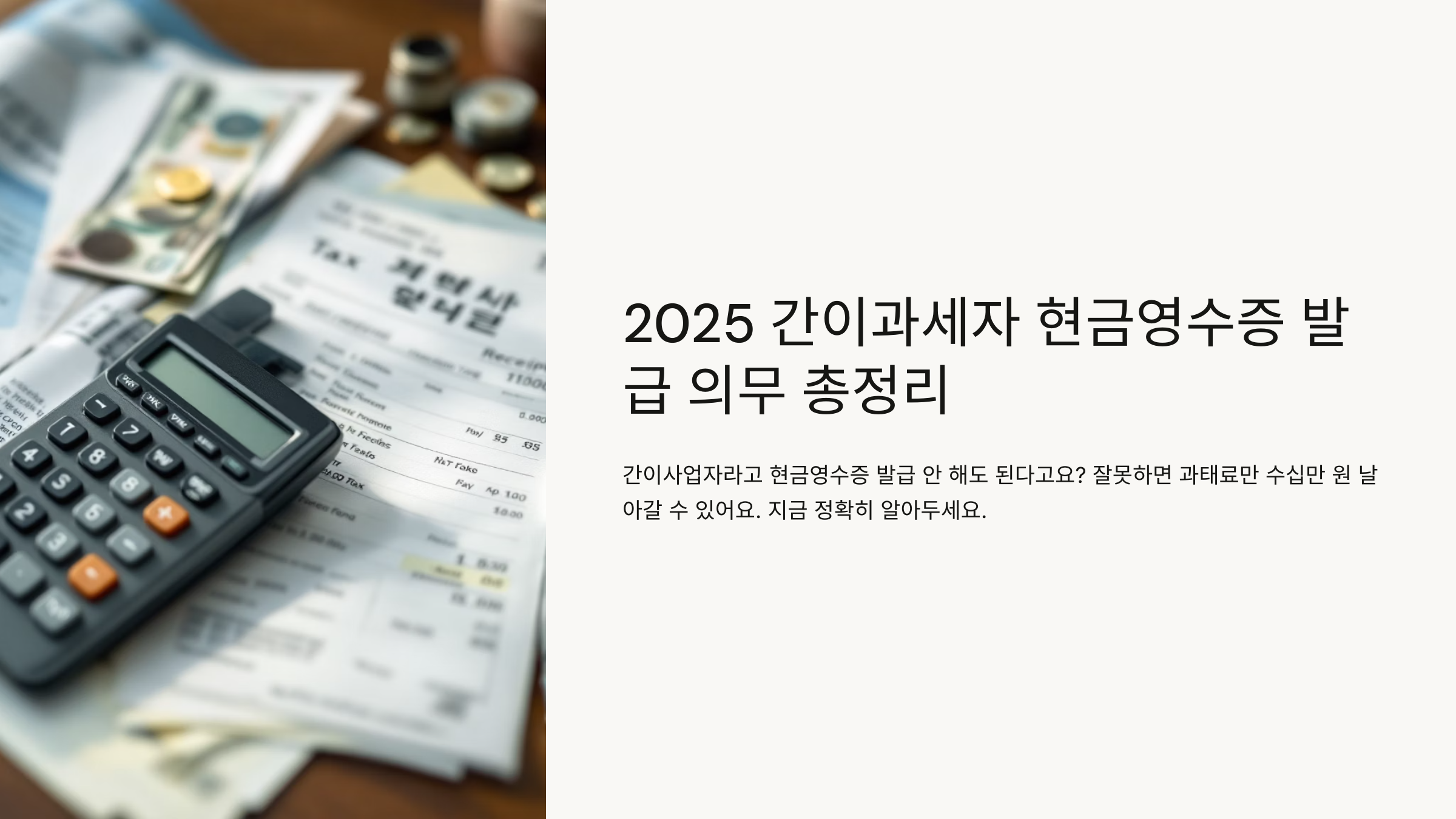 안녕하세요! 저는 3년째 소규모 온라인 스토어를 운영 중인 1인 창업자예요. 처음 간이과세자로 등록했을 땐, '작은 매출이니 그냥 현금영수증 안 해도 되겠지'라고 생각했는데요. 국세청 서신 한 통 받고 뒷목 잡았습니다. 💸 이 글에서는 제가 경험했던 실수와 함께, 간이사업자가 꼭 알아야 할 현금영수증 발급 의무 사항을 2025년 기준으로 아주 쉽게 정리해드릴게요.