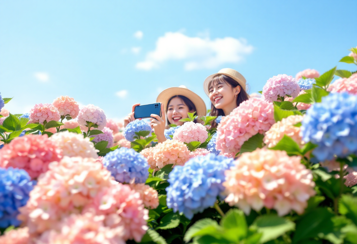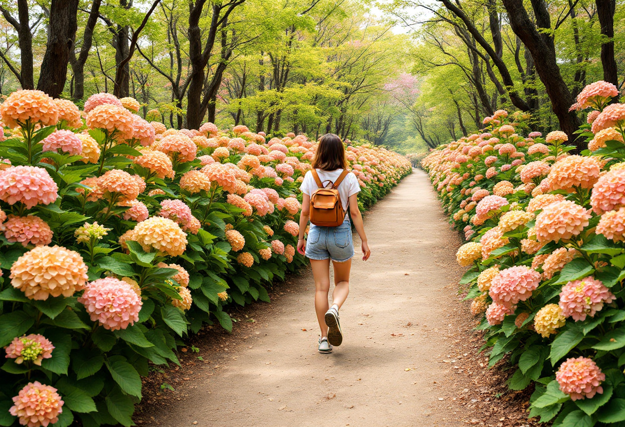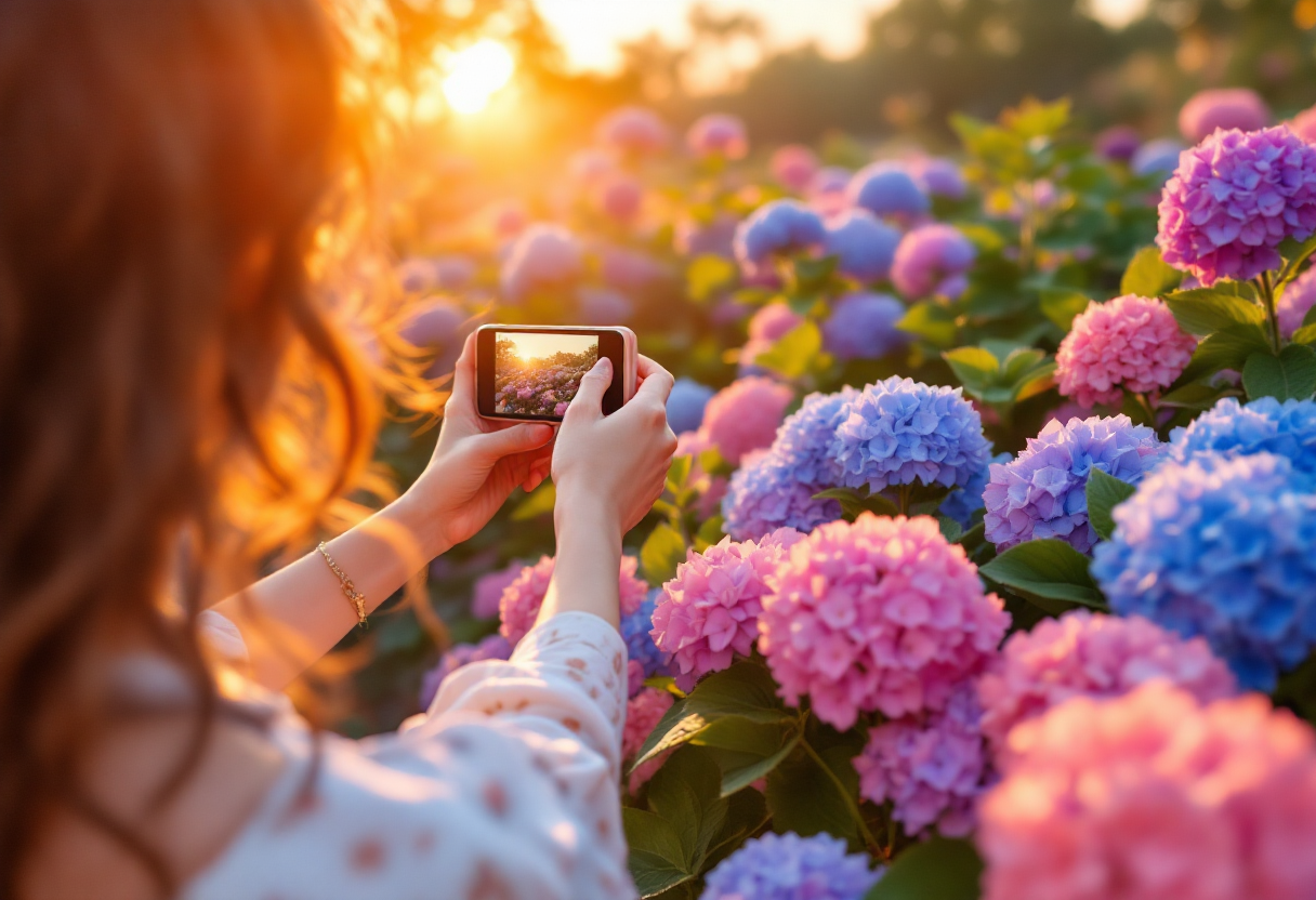 • 오전 9~11시, 오후 4~6시 – 부드러운 햇빛이 수국의 색감을 더욱 살려줍니다.