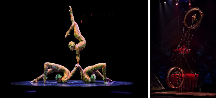 - 특징: 인간 중심 아크로바틱, 음악+무대미술+유머 결합